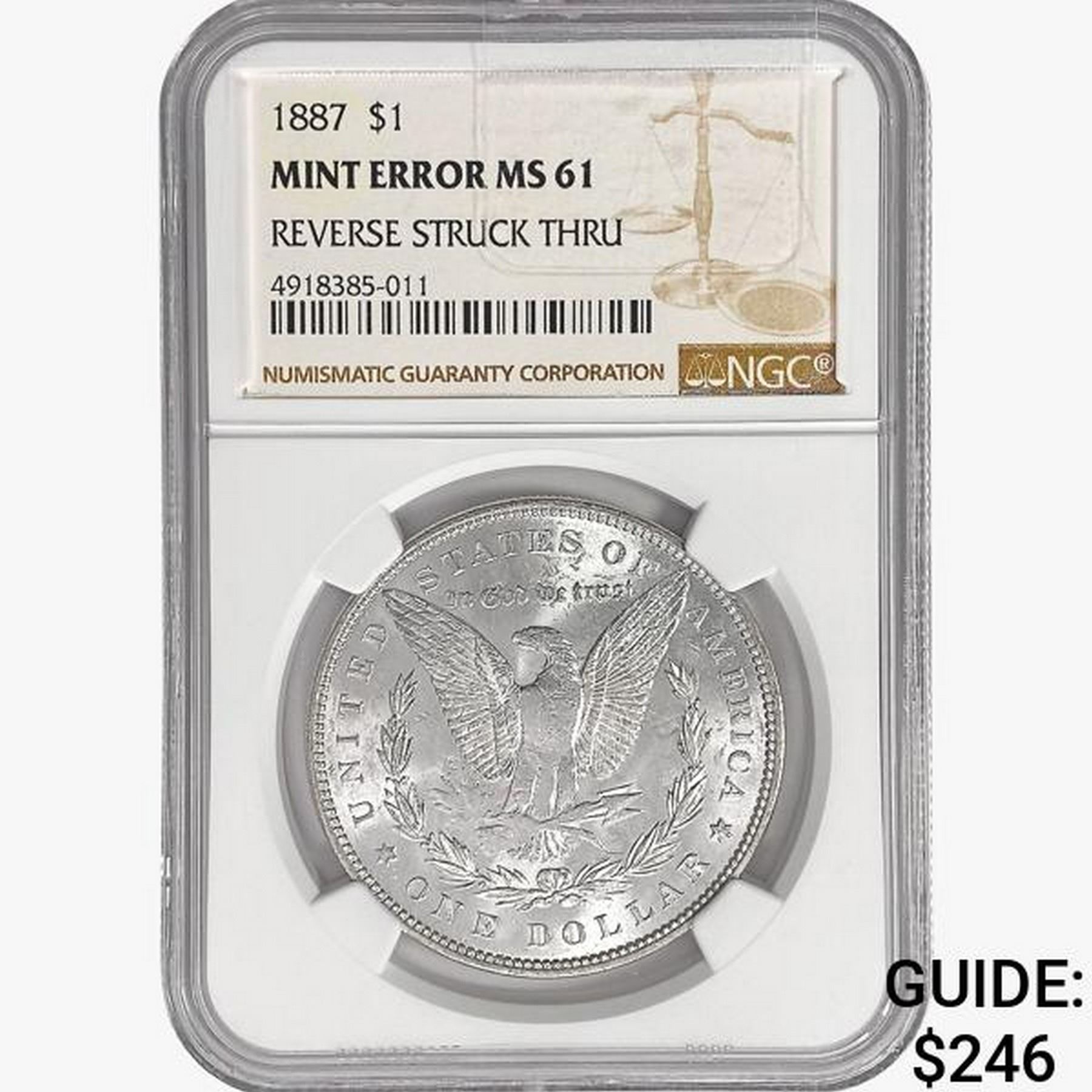 1887 Morgan Silver Dollar NGC MS61 Mint E. REV Str