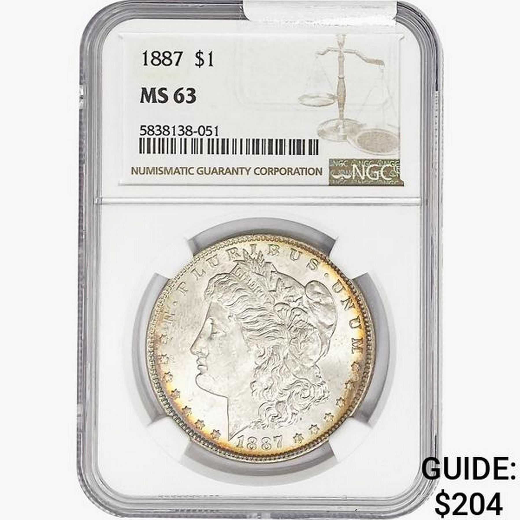 1887 Morgan Silver Dollar NGC MS63