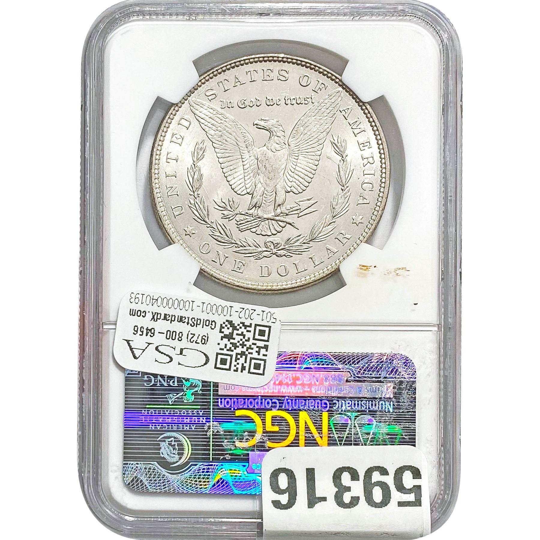 e. Coins sold referencing a third-party grading service are sold “AS IS” without any express or implied warranty, except for a guarantee by GSA that they are genuine. Removal or alteration of the holder, voids all of Bidder’s claims concerning that Product. Certain warranties may be available from the grading services and Bidders are referred to them for further details: Numismatic Guaranty Corporation (NGC), PO Box 4776, Sarasota, FL 34230, www.ngccoin.com/services/writtenguarantee.asp; Professional Coin Grading Services (PCGS), PO Box 9458, Newport Beach, CA 92658, www.pcgs.com/guarantee.html; ANACS, 6555 S. Kenton St., Ste. 303, Englewood, CO 80111; and Independent Coin Grading Co. (ICG), 7901 East Bellview, Ave., Suite 50, Englewood, CO 80111.