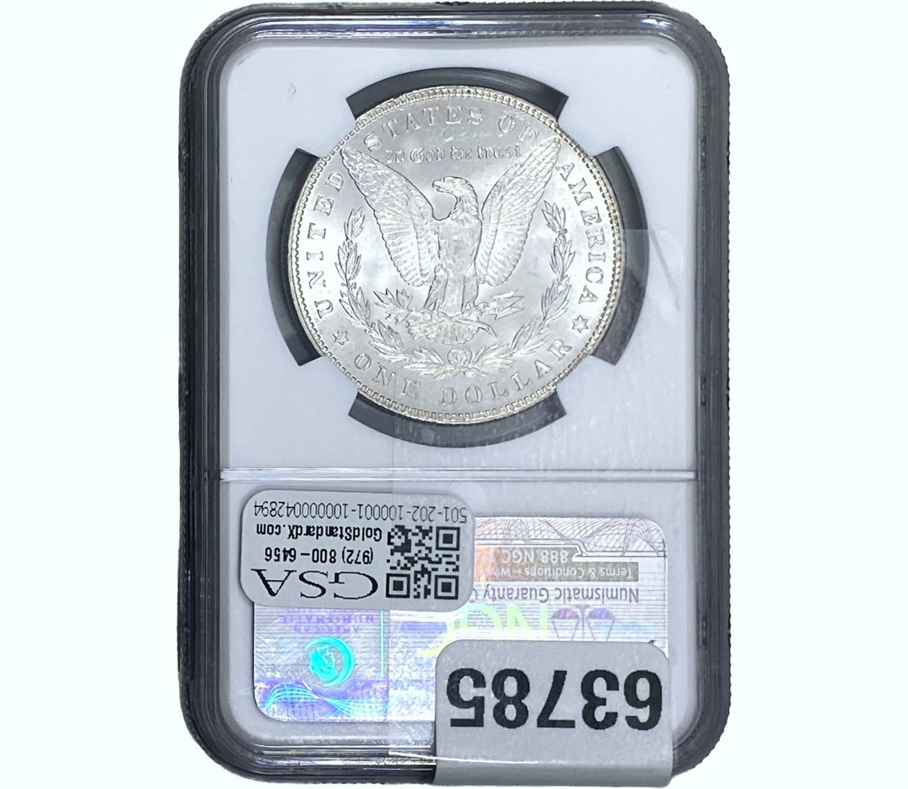e. Coins sold referencing a third-party grading service are sold “AS IS” without any express or implied warranty, except for a guarantee by GSA that they are genuine. Removal or alteration of the holder, voids all of Bidder’s claims concerning that Product. Certain warranties may be available from the grading services and Bidders are referred to them for further details: Numismatic Guaranty Corporation (NGC), PO Box 4776, Sarasota, FL 34230, www.ngccoin.com/services/writtenguarantee.asp; Professional Coin Grading Services (PCGS), PO Box 9458, Newport Beach, CA 92658, www.pcgs.com/guarantee.html; ANACS, 6555 S. Kenton St., Ste. 303, Englewood, CO 80111; and Independent Coin Grading Co. (ICG), 7901 East Bellview, Ave., Suite 50, Englewood, CO 80111.