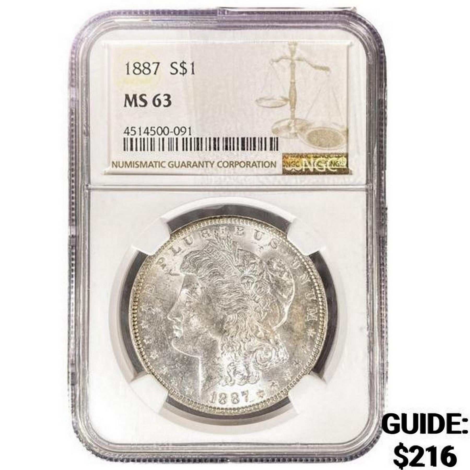 1887 Morgan Silver Dollar NGC MS63