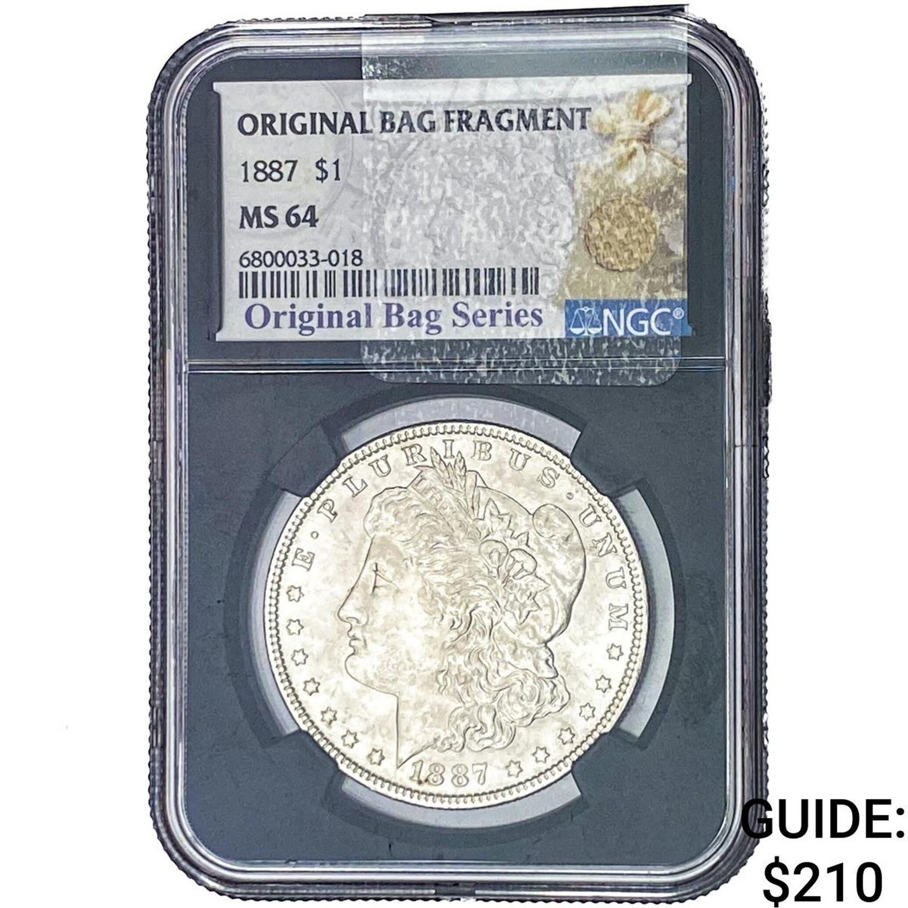 1887 Morgan Silver Dollar NGC MS64 Orig. Bag Fragment