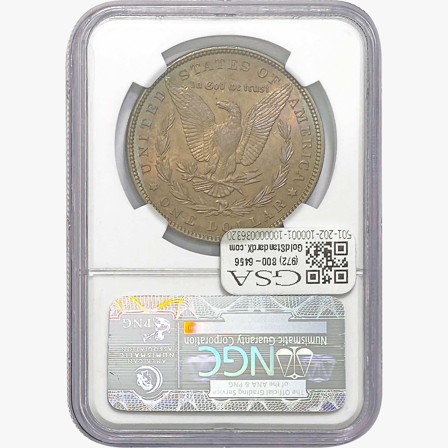 e. Coins sold referencing a third-party grading service are sold “AS IS” without any express or implied warranty, except for a guarantee by GSA that they are genuine. Removal or alteration of the holder, voids all of Bidder’s claims concerning that Product. Certain warranties may be available from the grading services and Bidders are referred to them for further details: Numismatic Guaranty Corporation (NGC), PO Box 4776, Sarasota, FL 34230, www.ngccoin.com/services/writtenguarantee.asp; Professional Coin Grading Services (PCGS), PO Box 9458, Newport Beach, CA 92658, www.pcgs.com/guarantee.html; ANACS, 6555 S. Kenton St., Ste. 303, Englewood, CO 80111; and Independent Coin Grading Co. (ICG), 7901 East Bellview, Ave., Suite 50, Englewood, CO 80111.