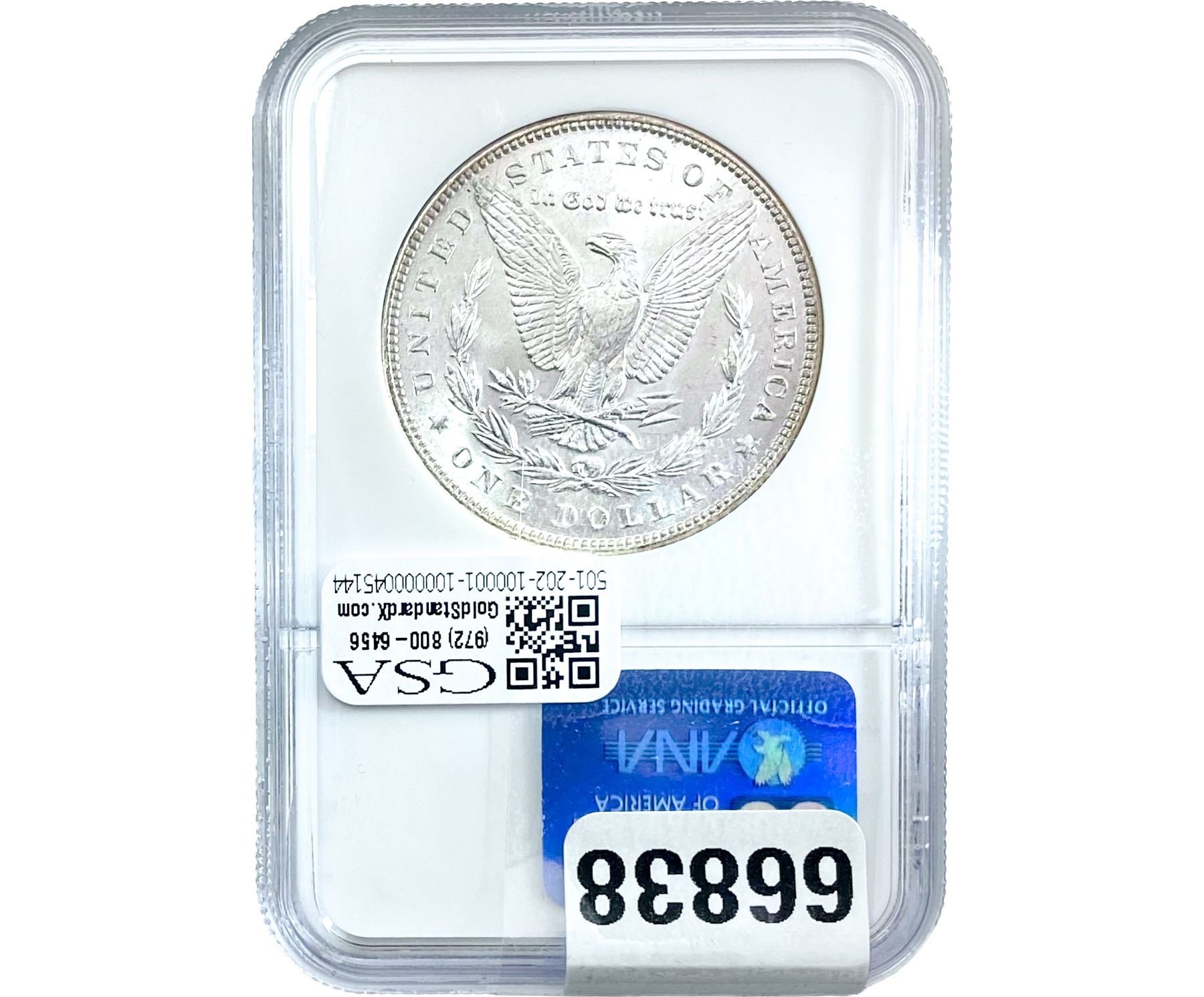 e. Coins sold referencing a third-party grading service are sold “AS IS” without any express or implied warranty, except for a guarantee by GSA that they are genuine. Removal or alteration of the holder, voids all of Bidder’s claims concerning that Product. Certain warranties may be available from the grading services and Bidders are referred to them for further details: Numismatic Guaranty Corporation (NGC), PO Box 4776, Sarasota, FL 34230, www.ngccoin.com/services/writtenguarantee.asp; Professional Coin Grading Services (PCGS), PO Box 9458, Newport Beach, CA 92658, www.pcgs.com/guarantee.html; ANACS, 6555 S. Kenton St., Ste. 303, Englewood, CO 80111; and Independent Coin Grading Co. (ICG), 7901 East Bellview, Ave., Suite 50, Englewood, CO 80111.