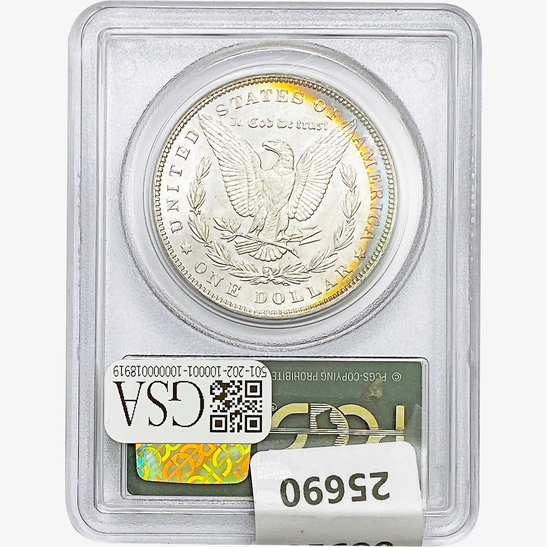 COINS AND CURRENCY LISTED IN GSA'S CATALOG AS GRADED AND ENCAPSULATED BY PCGS, NGC, ANACS, ICG, PCGS CURRENCY, PMG, PCGS BANKNOTE GRADING, CMC OR ANY OTHER THIRD-PARTY GRADING SERVICE ARE LIKEWISE SOLD "AS-IS" EXCEPT AS EXPRESSLY SET FORTH HEREIN. ALL THIRD-PARTY GRADING SERVICE GUARANTEES, INCLUDING AUTHENTICITY, ARE THE SOLE RESPONSIBILITY OF THE THIRD-PARTY GRADING SERVICE AND NOT WARRANTIES OR GUARANTEES OF GSA. BIDDERS SHOULD CONTACT THESE THIRD-PARTY GRADING SERVICES DIRECTLY WITH RESPECT TO ANY CLAIMS OR QUESTIONS THEY MAY HAVE CONCERNING THEIR GUARANTEES AND WARRANTIES. BIDDERS ACKNOWLEDGE AND AGREE THAT AUCTIONEER IS NOT BOUND BY OR LIABLE FOR ANY OPINION OR CERTIFICATION BY ANY THIRD-PARTY GRADING SERVICE. REMOVAL OF A PRODUCT FROM ITS PROTECTIVE CASING OR HOLDER OR ALTERATION OF ANY COIN HOLDER WAIVES ALL RIGHTS CONCERNING THE PRODUCT CONTAINED THEREIN.