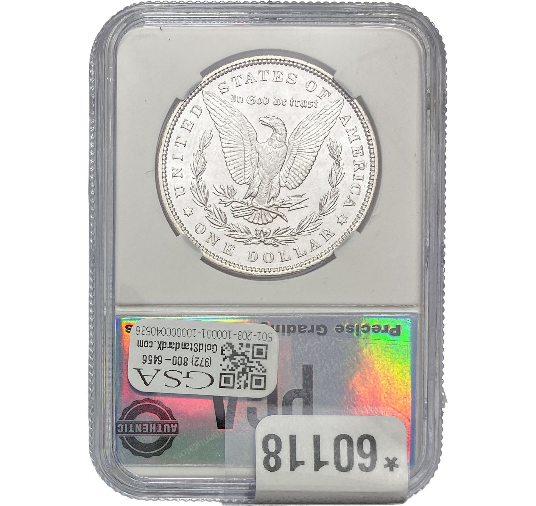 l. All non-certified coins and currency are guaranteed genuine, but are not guaranteed as to grade, since grading is a matter of opinion, an art and not a science, and therefore the description rendered by GSA or any third-party grading service may not agree with the opinion of others (including trained experts), and the same expert may not grade the same item with the same grade at two different times. GSA may, but is not obligated to, express an opinion as to non-certified numismatic items, in GSA’s opinion, or by its employees’ experience and the current interpretation of the American Numismatic Association’s standards as of the date the catalog was prepared. There is no guarantee or warranty expressed or implied that the grading opinions utilized by GSA, if any, will meet the standards of any grading service at any time in the future.