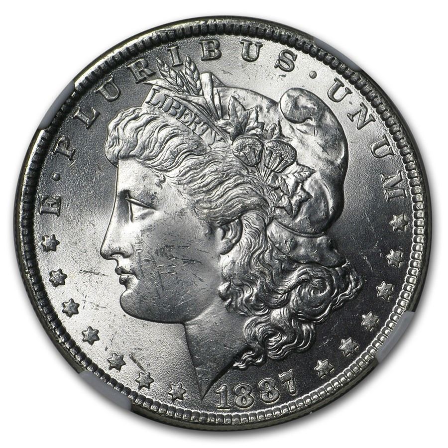 1887 Morgan Silver Dollar - Rare Stage Coach Label NGC (Brilliant Uncirculated)