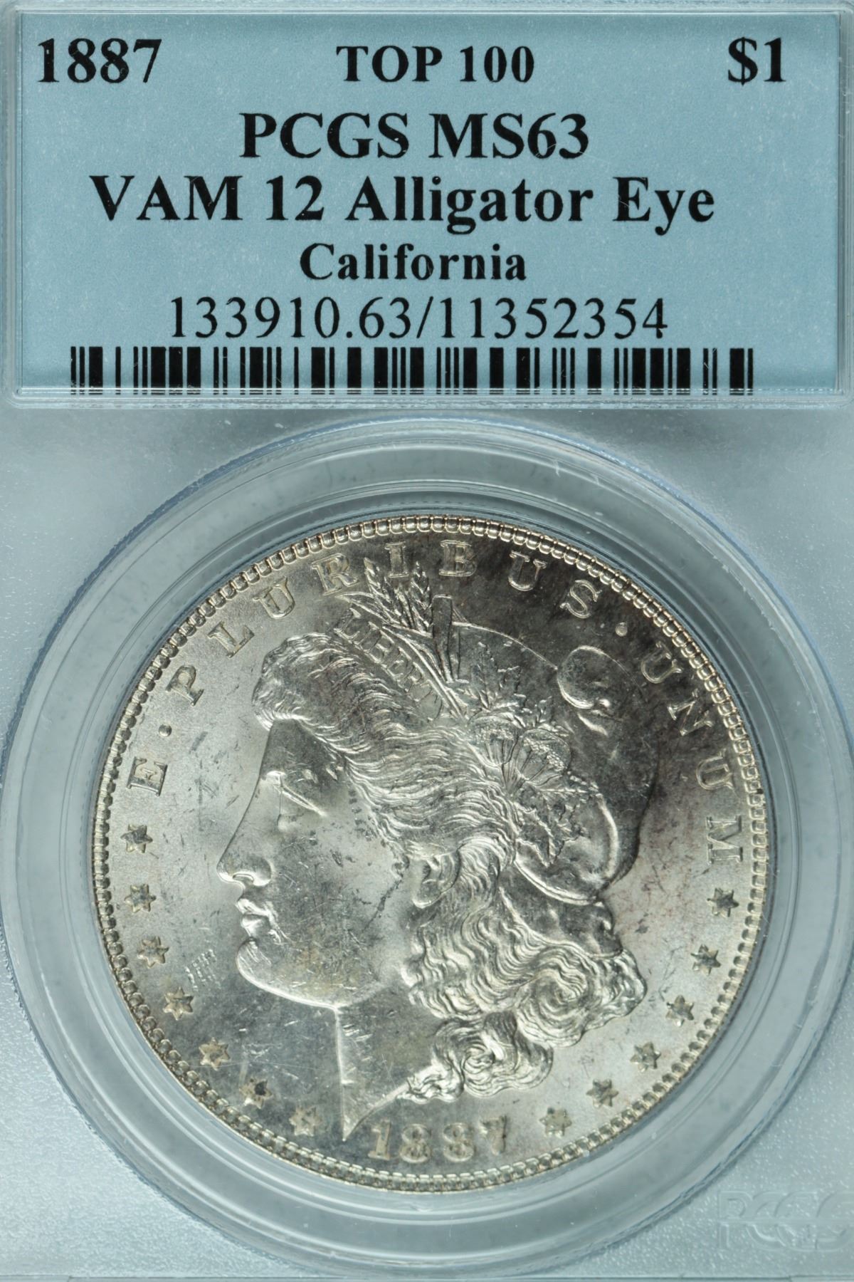 1887 Morgan VAM12 Alligator Eye, PCGS MS63