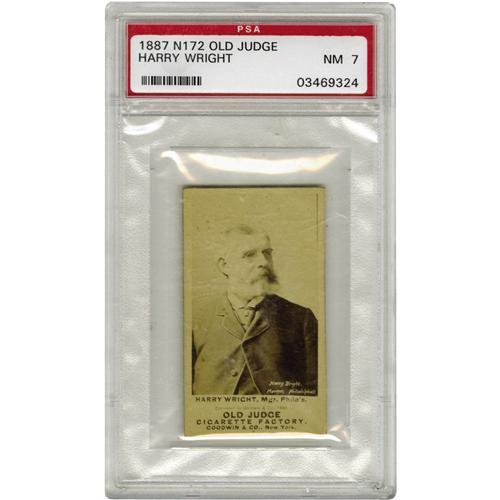 <B>1887 N172 Old Judge Harry Wright PSA NM 7.</B></I> Only a single Wright from this supremely scarce issue has ever topped that which we present here, and fewer than 100 cards from the entire N172 set have ever achieved better than a PSA NM 7. So suffice it to say that you'll search long and hard, and probably fruitlessly, to find a superior example of this card issued in honor of the Hall of Fame baseball pioneer responsible for such innovations as the modern uniform and baseball score sheets. Wonderful centering and a lack of physical evidence of age or wear makes us wonder if this card might deserve a resubmission for a possible upgrade. We can't imagine what that single PSA NM-MT 8 card could have that this one doesn't.<BR><BR><b>Shipping:</b> Sportscard (<a target="_blank" href="http://www.heritageauctions.com/common/shipping.php">view shipping information</a>)