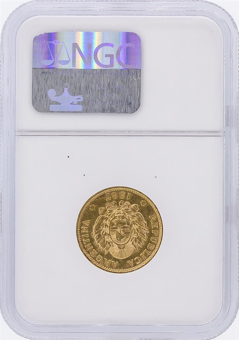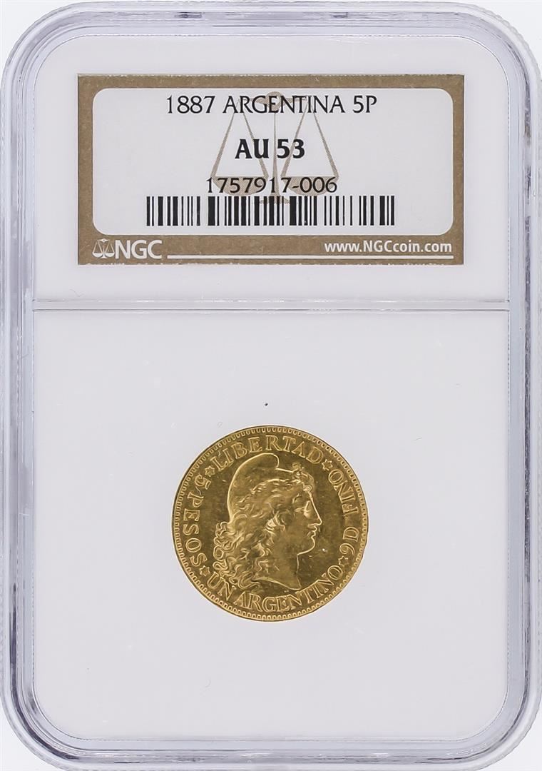 One 1887 NGC AU53 Argentina 5 Pesos Gold Coin. NGC Certified.