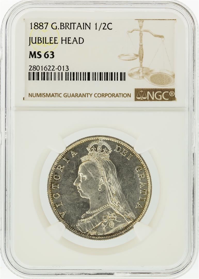 One 1887 NGC MS63 Great Britain 1/2 Crown Jubilee Coin. NGC Certified.