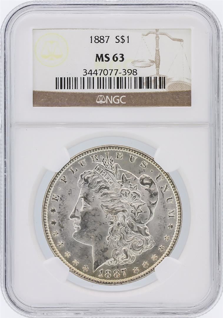 One 1887 NGC MS63 Morgan Silver Dollar.
