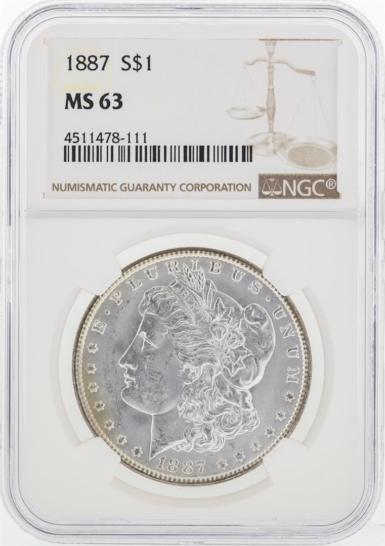 One 1887 NGC MS63 Morgan Silver Dollar. NGC Certified.