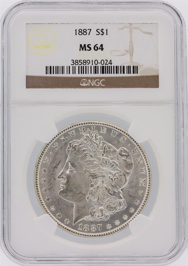 One 1887 NGC MS64 Morgan Silver Dollar. NGC Certified.