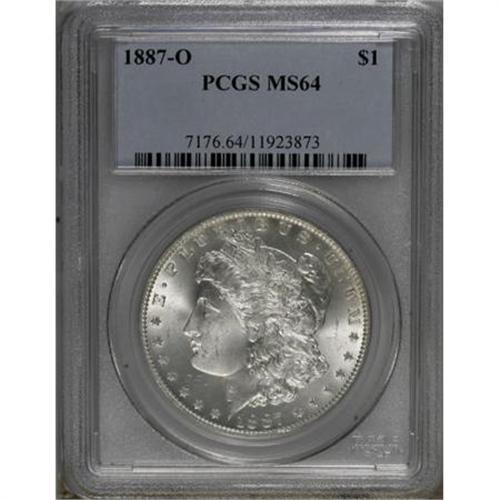 <B>1887-O $1 MS64 PCGS.</B></I> NGC Census: (1617/103). PCGS Population (2040/281). Mintage: 11,550,000. Numismedia Wsl. Price for NGC/PCGS coin in MS64: $330. (#7176)<BR><BR><B>Coin Engraver:</B> George T. Morgan<BR><BR><b>Shipping:</b> Coins & Currency (<a target="_blank" href="http://www.heritageauctions.com/common/shipping.php">view shipping information</a>)
