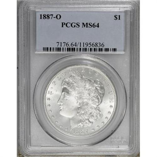 <B>1887-O $1 MS64 PCGS.</B></I> This lovely near-Gem has booming luster and minimal grazes. The centers have only minor incompleteness of strike. An excellent value relative to the MS65 level.<BR><BR><B>Coin Engraver:</B> George T. Morgan<BR><BR><b>Shipping:</b> Coins & Currency (<a target="_blank" href="http://www.heritageauctions.com/common/shipping.php">view shipping information</a>)
