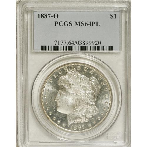 <B>1887-O $1 MS64 Prooflike PCGS.</B></I> PCGS Population (89/14). NGC Census: (150/10). Numismedia Wsl. Price for NGC/PCGS coin in MS64: $500. (#7177)<BR><BR><b>Shipping:</b> Coins & Currency (<a target="_blank" href="http://www.heritageauctions.com/common/shipping.php">view shipping information</a>)