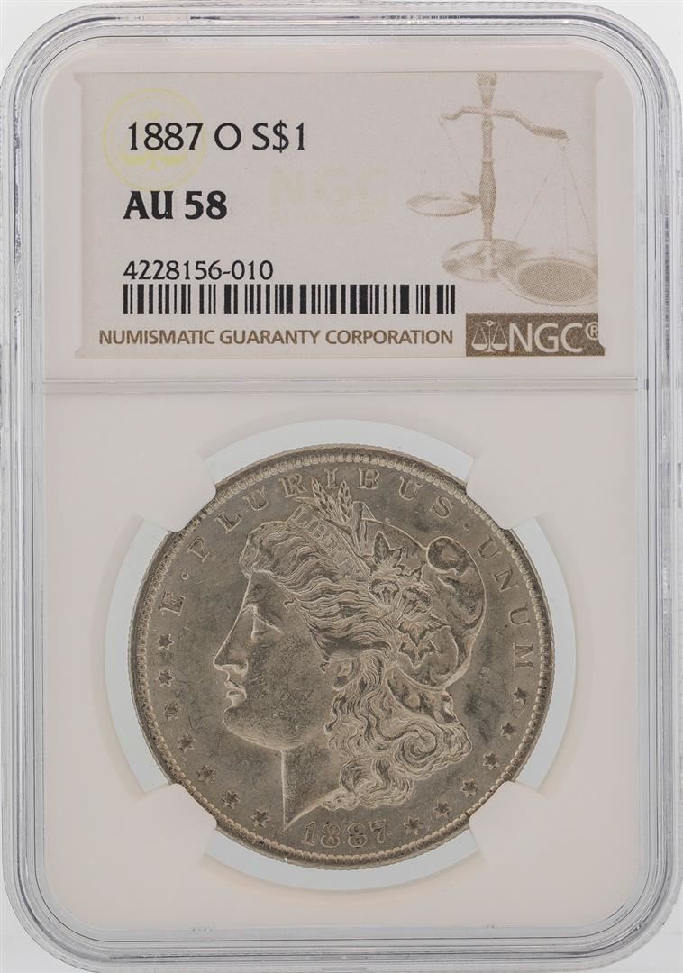 One 1887-O $1 Morgan Silver Dollar Coin NGC AU58. NGC Certified.