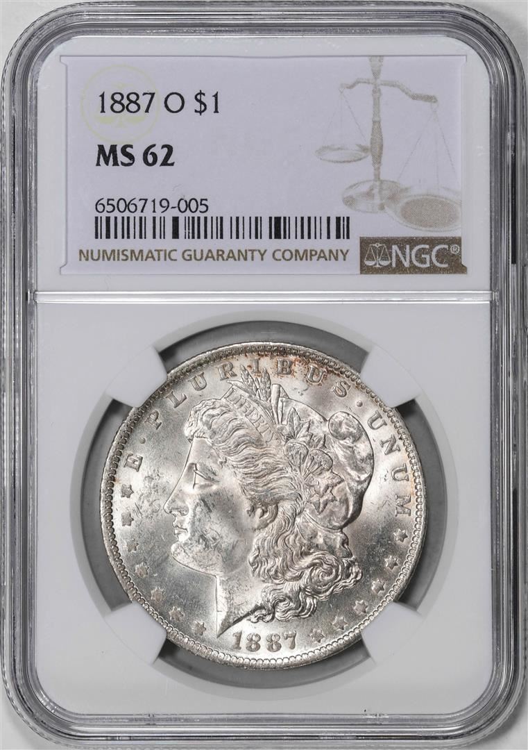 One 1887-O $1 Morgan Silver Dollar Coin NGC MS62. NGC Certified.