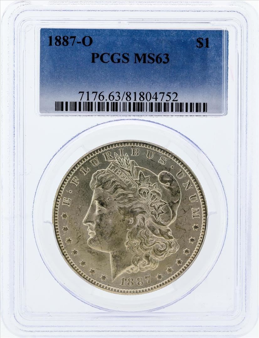One 1887-O $1 Morgan Silver Dollar Coin PCGS MS63. PCGS Graded.