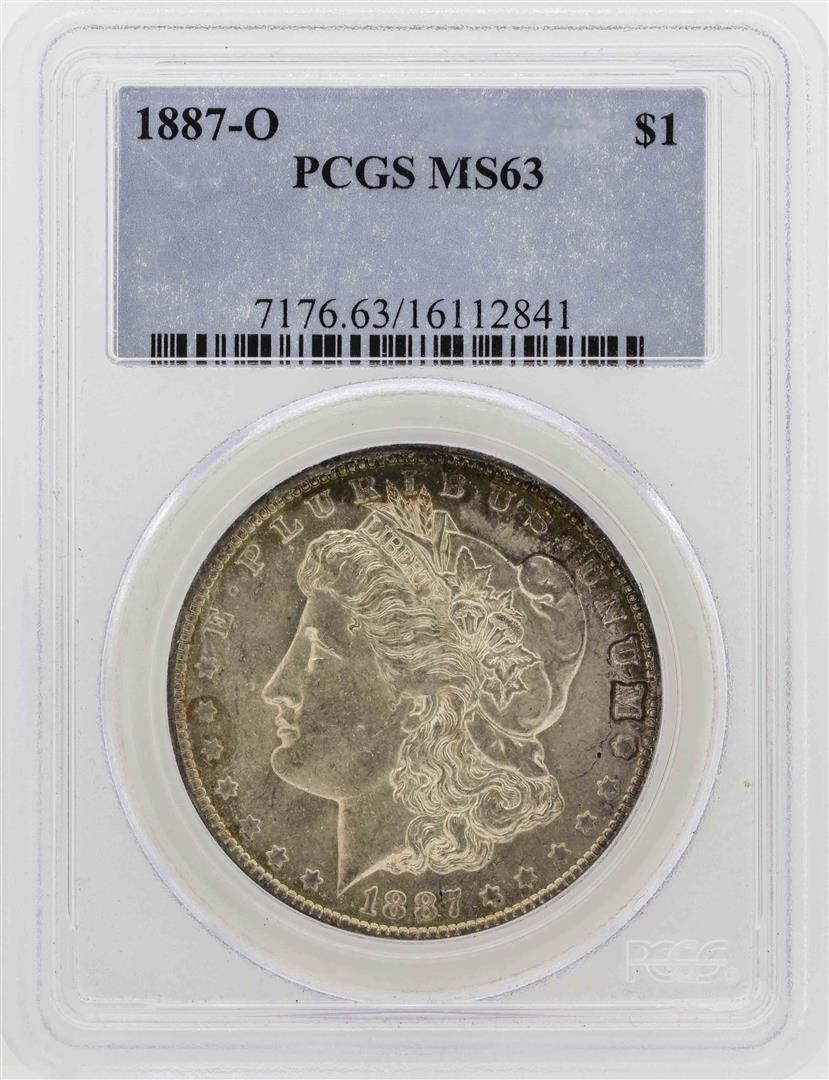 One 1887-O $1 Morgan Silver Dollar Coin PCGS MS63. PCGS Graded.