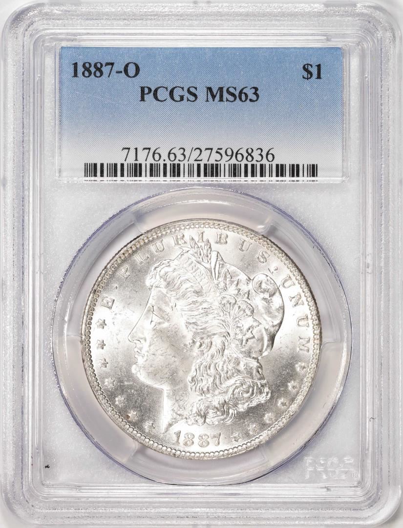 One 1887-O $1 Morgan Silver Dollar Coin PCGS MS63. PCGS Graded.