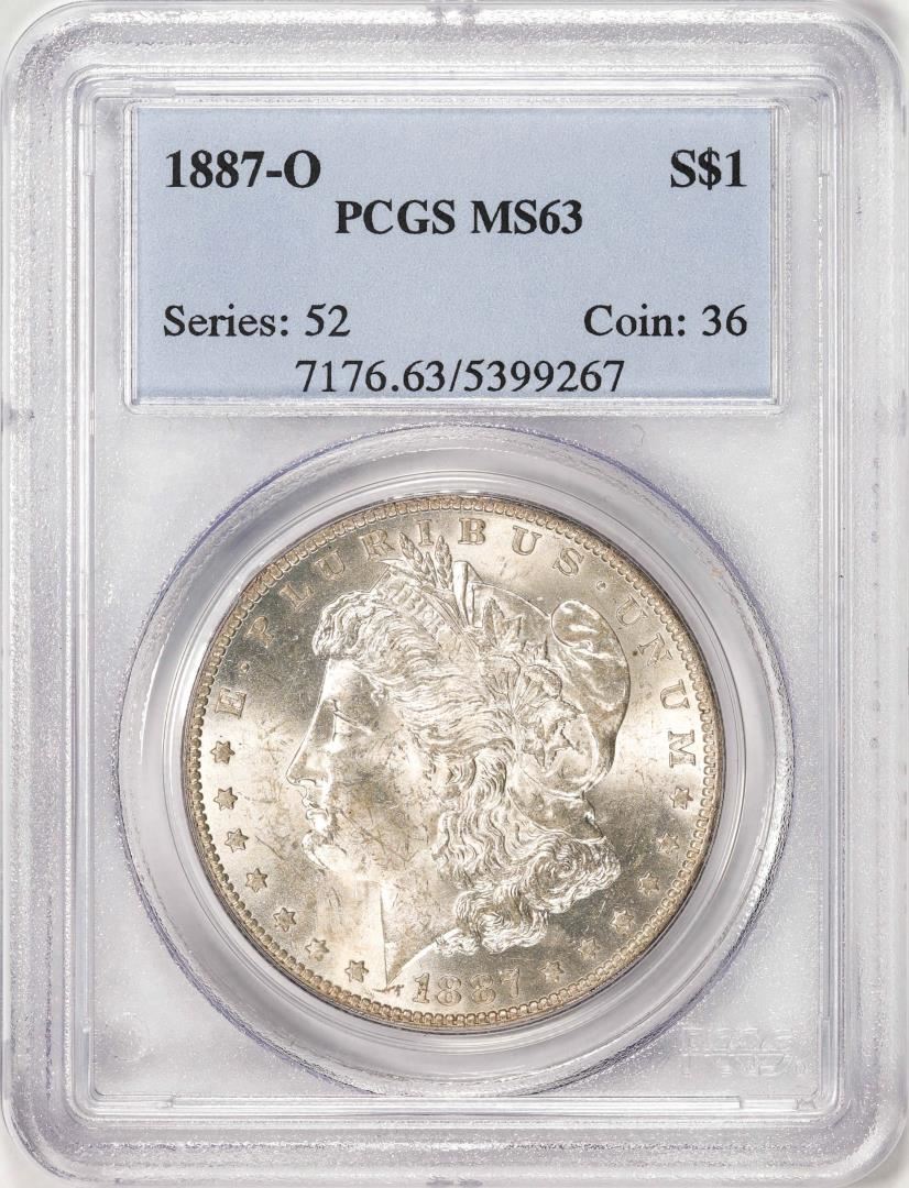 One 1887-O $1 Morgan Silver Dollar Coin PCGS MS63. PCGS Graded.
