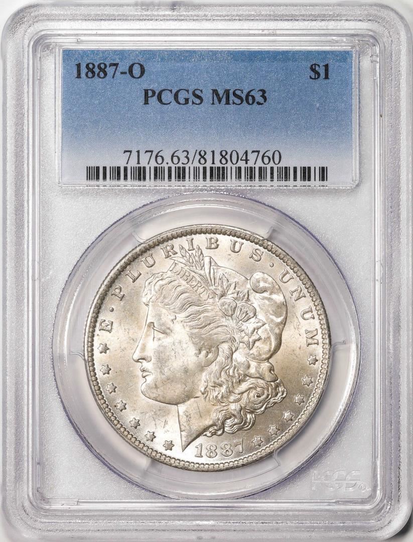 One 1887-O $1 Morgan Silver Dollar Coin PCGS MS63. PCGS Graded.