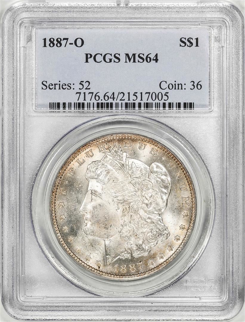 One 1887-O $1 Morgan Silver Dollar Coin PCGS MS64. PCGS Graded.