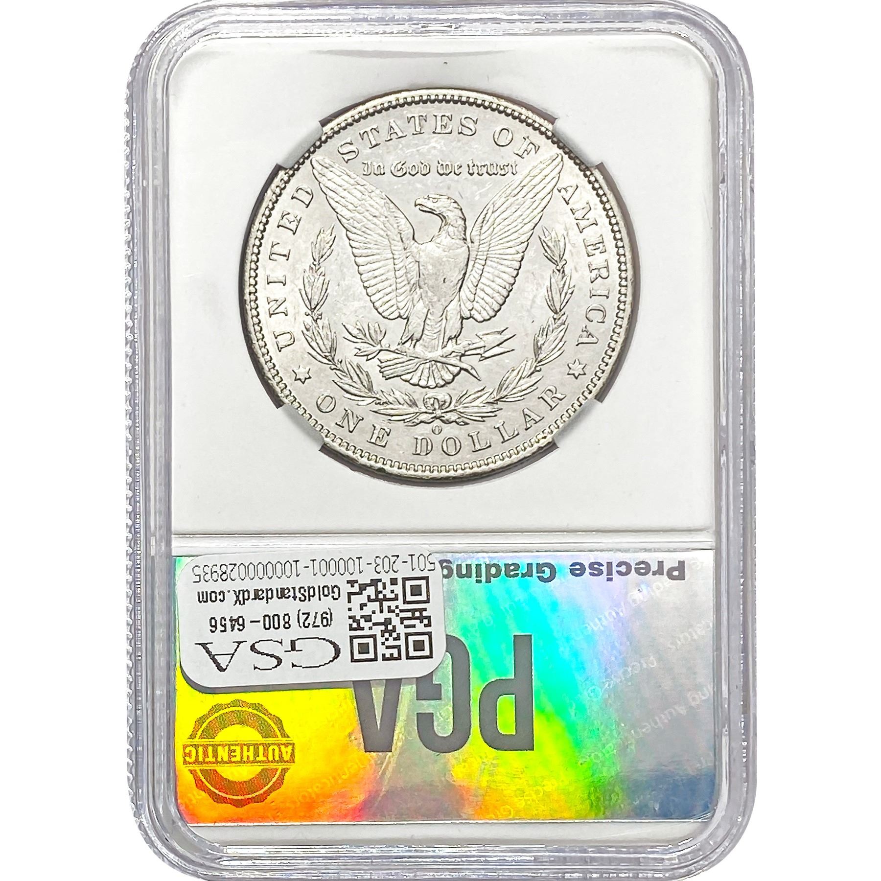 e. Coins sold referencing a third-party grading service are sold “AS IS” without any express or implied warranty, except for a guarantee by GSA that they are genuine. Removal or alteration of the holder, voids all of Bidder’s claims concerning that Product. Certain warranties may be available from the grading services and Bidders are referred to them for further details: Numismatic Guaranty Corporation (NGC), PO Box 4776, Sarasota, FL 34230, www.ngccoin.com/services/writtenguarantee.asp; Professional Coin Grading Services (PCGS), PO Box 9458, Newport Beach, CA 92658, www.pcgs.com/guarantee.html; ANACS, 6555 S. Kenton St., Ste. 303, Englewood, CO 80111; and Independent Coin Grading Co. (ICG), 7901 East Bellview, Ave., Suite 50, Englewood, CO 80111.