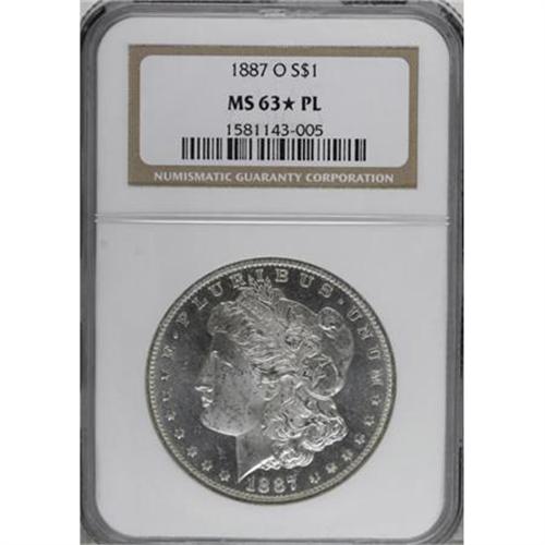 <B>1887-O $1 MS63</B></I> S<B> Prooflike NGC.</B></I> NGC Census: (85/79). PCGS Population (102/106). Numismedia Wsl. Price for NGC/PCGS coin in MS63: $180. (#7177)<BR><BR><B>Coin Engraver:</B> George T. Morgan<BR><BR><b>Shipping:</b> Coins & Currency (<a target="_blank" href="http://www.heritageauctions.com/common/shipping.php">view shipping information</a>)