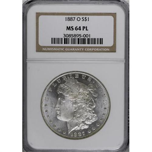 <B>1887-O $1 MS64 Prooflike NGC.</B></I> NGC Census: (74/5). PCGS Population (91/14). Numismedia Wsl. Price for NGC/PCGS coin in MS64: $500. (#7177)<BR><BR><B>Coin Engraver:</B> George T. Morgan<BR><BR><b>Shipping:</b> Coins & Currency (<a target="_blank" href="http://www.heritageauctions.com/common/shipping.php">view shipping information</a>)