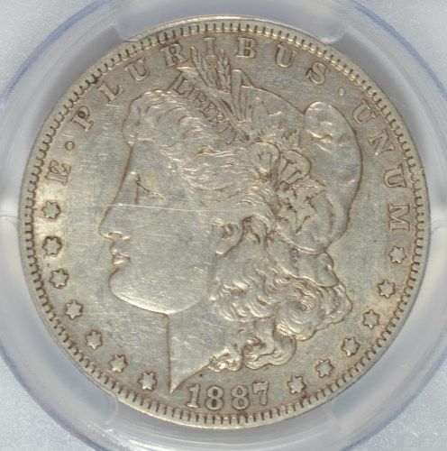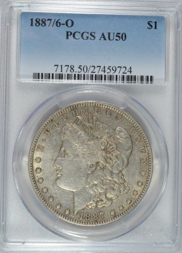 1887-O 7/6 MORGAN SILVER DOLLAR, PCGS AU-50 RARE, POPULATION OF 8! NGC 0!