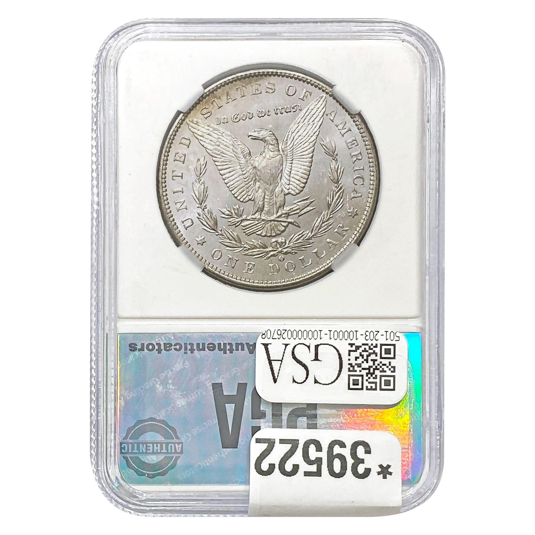 COINS AND CURRENCY LISTED IN GSA’S CATALOG AS GRADED AND ENCAPSULATED BY PCGS, NGC, ANACS, ICG, PCGS CURRENCY, PMG, PCGS BANKNOTE GRADING, CMC OR ANY OTHER THIRD-PARTY GRADING SERVICE ARE LIKEWISE SOLD “AS-IS” EXCEPT AS EXPRESSLY SET FORTH HEREIN. ALL THIRD-PARTY GRADING SERVICE GUARANTEES, INCLUDING AUTHENTICITY, ARE THE SOLE RESPONSIBILITY OF THE THIRD-PARTY GRADING SERVICE AND NOT WARRANTIES OR GUARANTEES OF GSA. BIDDERS SHOULD CONTACT THESE THIRD-PARTY GRADING SERVICES DIRECTLY WITH RESPECT TO ANY CLAIMS OR QUESTIONS THEY MAY HAVE CONCERNING THEIR GUARANTEES AND WARRANTIES. BIDDERS ACKNOWLEDGE AND AGREE THAT AUCTIONEER IS NOT BOUND BY OR LIABLE FOR ANY OPINION OR CERTIFICATION BY ANY THIRD-PARTY GRADING SERVICE. REMOVAL OF A PRODUCT FROM ITS PROTECTIVE CASING OR HOLDER OR ALTERATION OF ANY COIN HOLDER WAIVES ALL RIGHTS CONCERNING THE PRODUCT CONTAINED THEREIN.