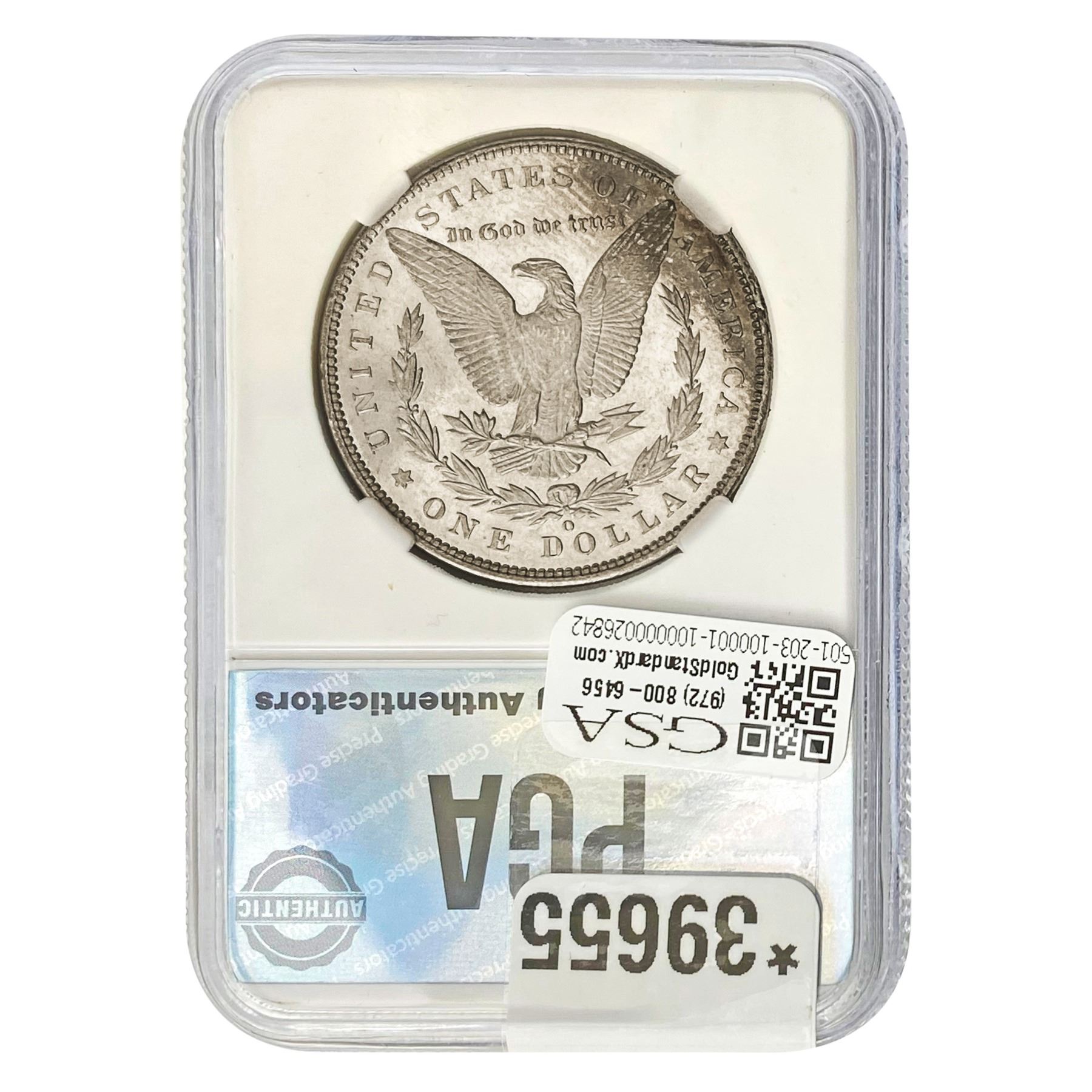 COINS AND CURRENCY LISTED IN GSA’S CATALOG AS GRADED AND ENCAPSULATED BY PCGS, NGC, ANACS, ICG, PCGS CURRENCY, PMG, PCGS BANKNOTE GRADING, CMC OR ANY OTHER THIRD-PARTY GRADING SERVICE ARE LIKEWISE SOLD “AS-IS” EXCEPT AS EXPRESSLY SET FORTH HEREIN. ALL THIRD-PARTY GRADING SERVICE GUARANTEES, INCLUDING AUTHENTICITY, ARE THE SOLE RESPONSIBILITY OF THE THIRD-PARTY GRADING SERVICE AND NOT WARRANTIES OR GUARANTEES OF GSA. BIDDERS SHOULD CONTACT THESE THIRD-PARTY GRADING SERVICES DIRECTLY WITH RESPECT TO ANY CLAIMS OR QUESTIONS THEY MAY HAVE CONCERNING THEIR GUARANTEES AND WARRANTIES. BIDDERS ACKNOWLEDGE AND AGREE THAT AUCTIONEER IS NOT BOUND BY OR LIABLE FOR ANY OPINION OR CERTIFICATION BY ANY THIRD-PARTY GRADING SERVICE. REMOVAL OF A PRODUCT FROM ITS PROTECTIVE CASING OR HOLDER OR ALTERATION OF ANY COIN HOLDER WAIVES ALL RIGHTS CONCERNING THE PRODUCT CONTAINED THEREIN.