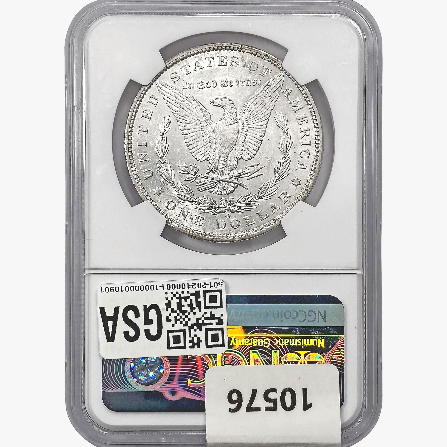 COINS AND CURRENCY LISTED IN GSA’S CATALOG AS GRADED AND ENCAPSULATED BY PCGS, NGC, ANACS, ICG, PCGS CURRENCY, PMG, PCGS BANKNOTE GRADING, CMC OR ANY OTHER THIRD-PARTY GRADING SERVICE ARE LIKEWISE SOLD “AS-IS” EXCEPT AS EXPRESSLY SET FORTH HEREIN. ALL THIRD-PARTY GRADING SERVICE GUARANTEES, INCLUDING AUTHENTICITY, ARE THE SOLE RESPONSIBILITY OF THE THIRD-PARTY GRADING SERVICE AND NOT WARRANTIES OR GUARANTEES OF GSA. BIDDERS SHOULD CONTACT THESE THIRD-PARTY GRADING SERVICES DIRECTLY WITH RESPECT TO ANY CLAIMS OR QUESTIONS THEY MAY HAVE CONCERNING THEIR GUARANTEES AND WARRANTIES. BIDDERS ACKNOWLEDGE AND AGREE THAT AUCTIONEER IS NOT BOUND BY OR LIABLE FOR ANY OPINION OR CERTIFICATION BY ANY THIRD-PARTY GRADING SERVICE. REMOVAL OF A PRODUCT FROM ITS PROTECTIVE CASING OR HOLDER OR ALTERATION OF ANY COIN HOLDER WAIVES ALL RIGHTS CONCERNING THE PRODUCT CONTAINED THEREIN.