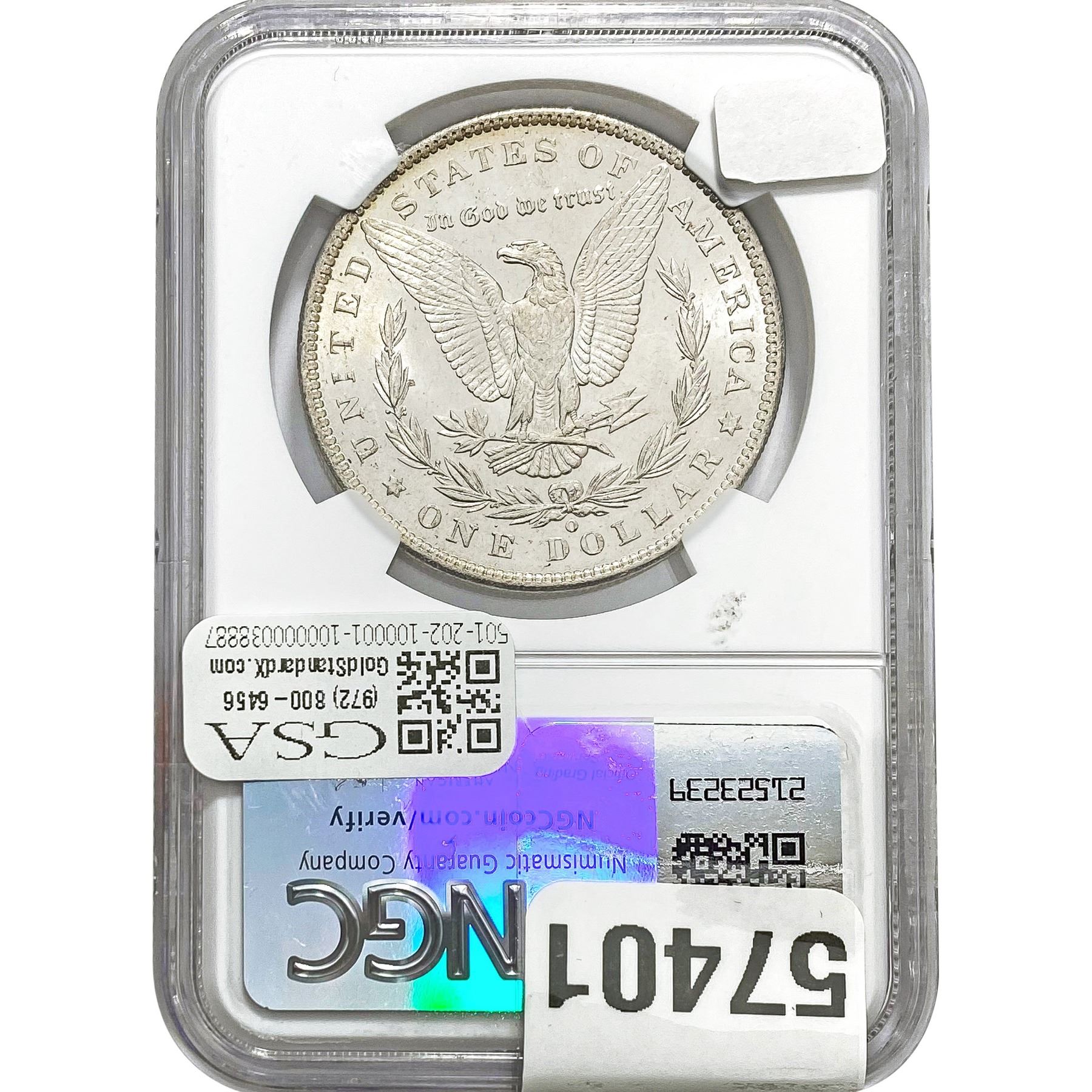 e. Coins sold referencing a third-party grading service are sold “AS IS” without any express or implied warranty, except for a guarantee by GSA that they are genuine. Removal or alteration of the holder, voids all of Bidder’s claims concerning that Product. Certain warranties may be available from the grading services and Bidders are referred to them for further details: Numismatic Guaranty Corporation (NGC), PO Box 4776, Sarasota, FL 34230, www.ngccoin.com/services/writtenguarantee.asp; Professional Coin Grading Services (PCGS), PO Box 9458, Newport Beach, CA 92658, www.pcgs.com/guarantee.html; ANACS, 6555 S. Kenton St., Ste. 303, Englewood, CO 80111; and Independent Coin Grading Co. (ICG), 7901 East Bellview, Ave., Suite 50, Englewood, CO 80111.