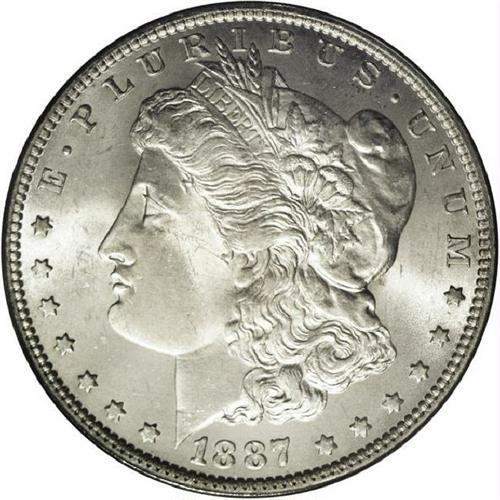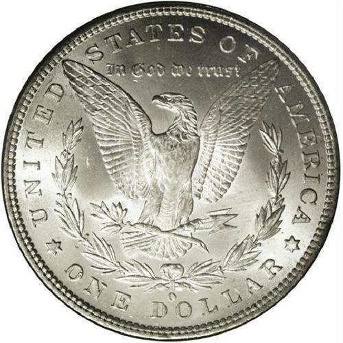 <B>1887-O<img border='0' src='http://www.heritagecoins.com/images/star.gif' width=10 height=10>$1> MS65 PCGS.</B></I> A Gem example of this scarce O-mint issue, this lovely, untoned coin offers splendid cartwheel brilliance and minimal abrasions. The strike is typical of the New Orleans Mint, however, somewhat deficient at Liberty's over-ear hair and on the fine breast feathers in the center of the eagle's breast.