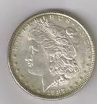 1887-P MORGAN SILVER DOLLAR BU/MS++ UNCIRCULATED WITH RAINBOW TONING. I TRIED BUT I COULD NOT GET THE BEAUTIFUL RED,YELLOW, GREEN , BLUE & GOLD TONING COLLORS TO SHOW UP IN THE PICTURE. IT JUST KEPT COMING OUT AS YOU SEE. THE OBVERSE HAS BLUE, GREEN & GOLD AROUND PART OF THE RIM.THE REVERSE IS WHERE THE TRUE RAINBOW SHOWS ALL THE COLORS FROM THE EAGLE OVER TO THE LEFT RIM. YOU'LL LOVE IT.