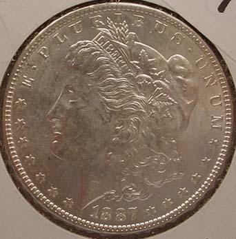 1887-P MORGAN SILVER DOLLAR UNC. MS-63