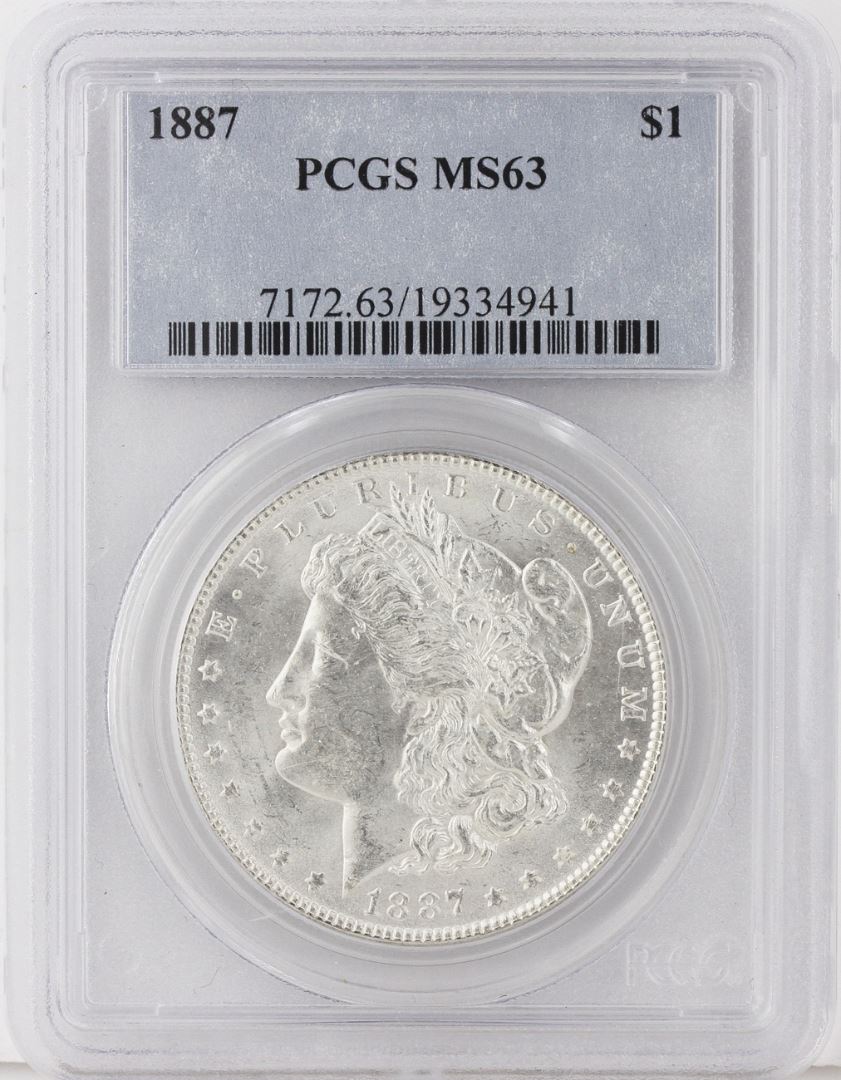One 1887 PCGS MS63 Morgan Silver Dollar. PCGS Certified.