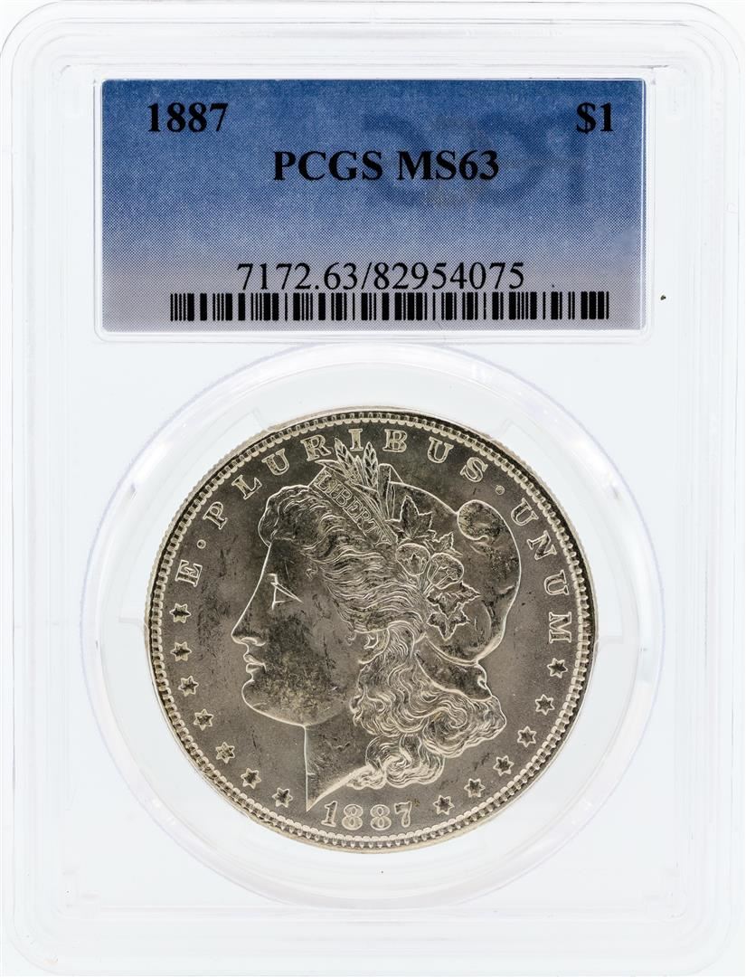 One 1887 PCGS MS63 Morgan Silver Dollar.