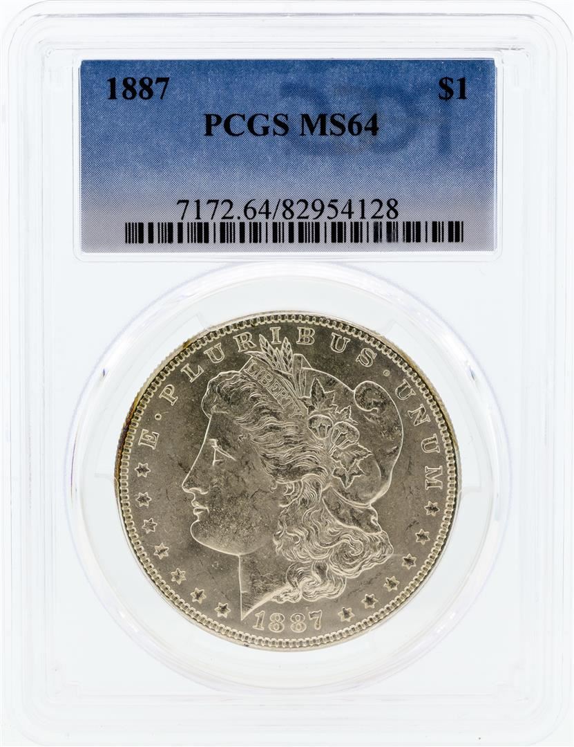 One 1887 PCGS MS64 Morgan Silver Dollar.