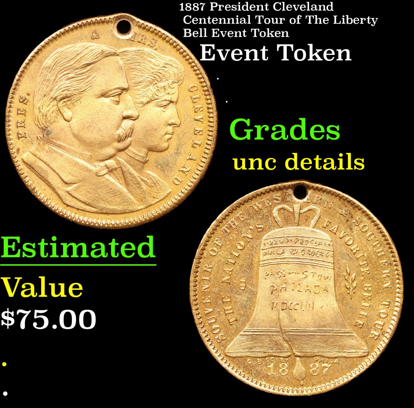 1887 President Cleveland Centennial Tour of The Liberty Bell Event Token Grades Unc Details