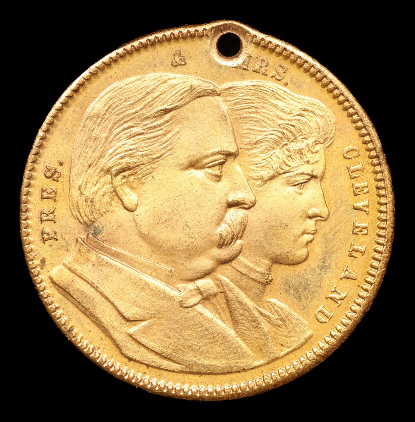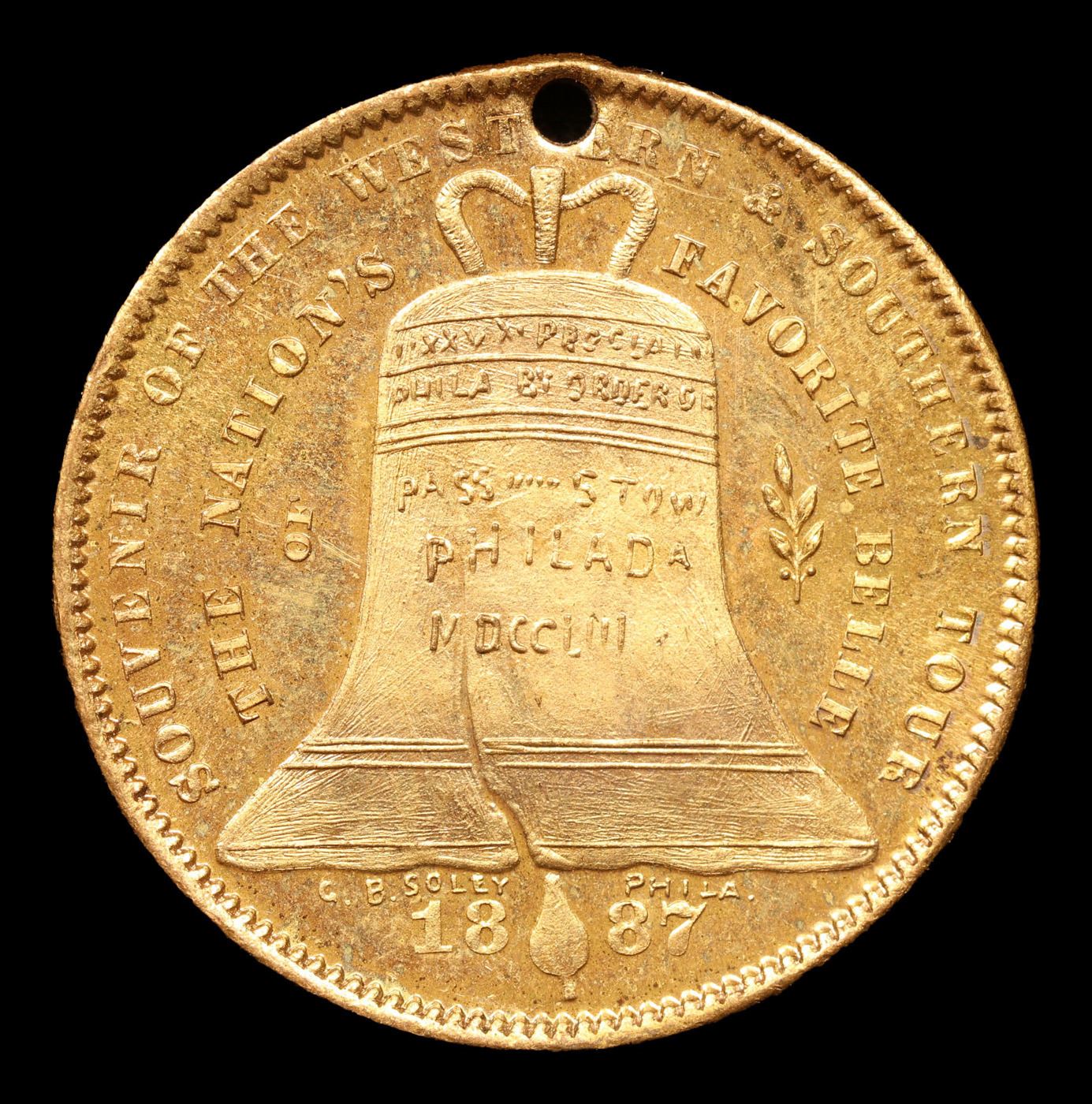 1887 President Cleveland Centennial Tour of The Liberty Bell Event Token Grades Unc Details. This piece of history features the portraits of Mr. & Mrs. Grover Cleveland on the obverse and an image of the Liberty Bell on the reverse with “Souvenir of the Western and Southern Tour - The Nations Favorite Bell”.