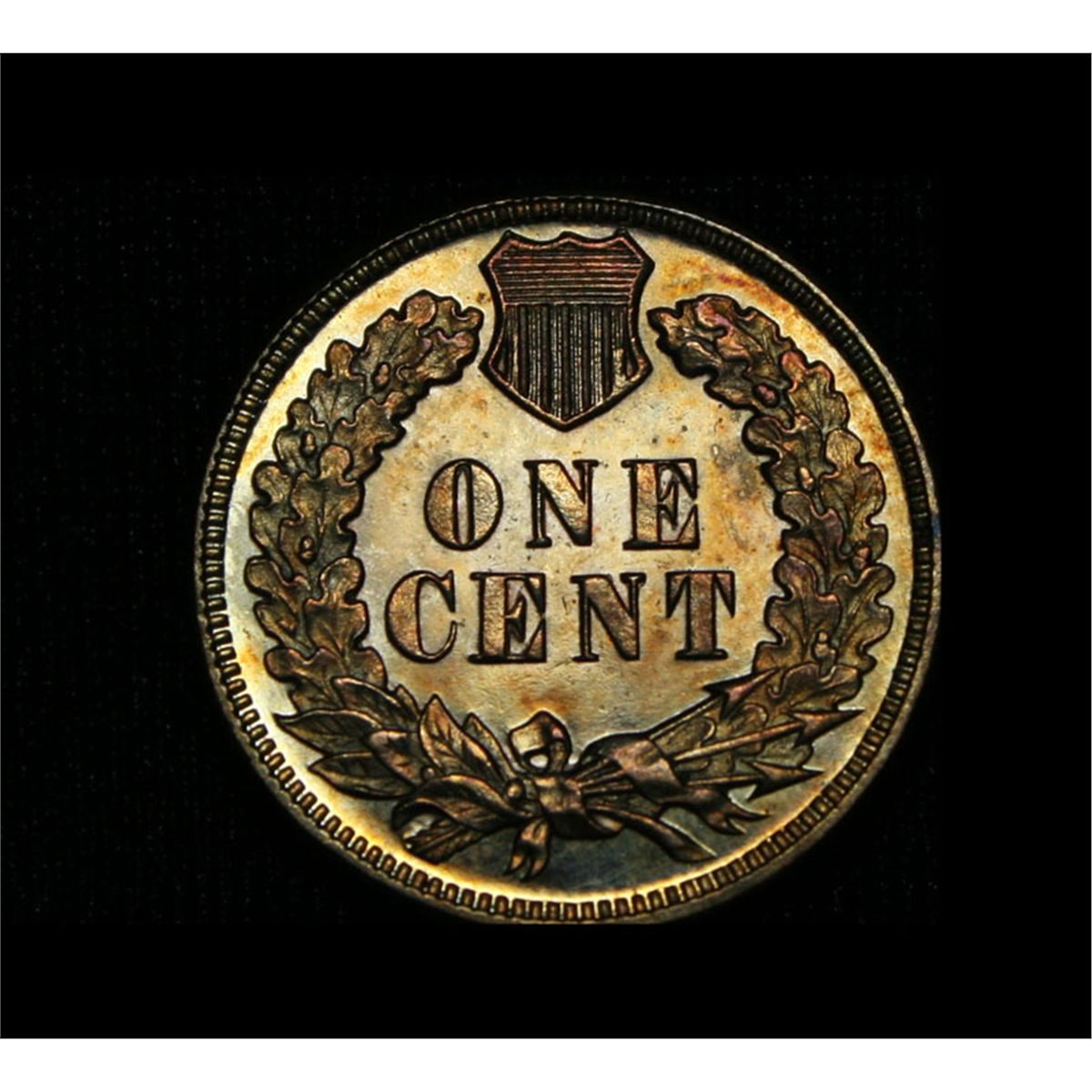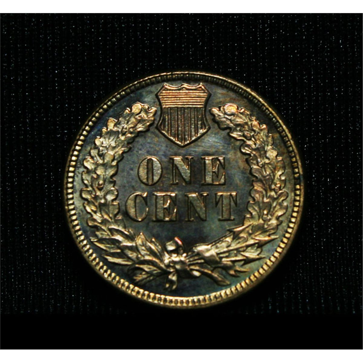 Very attractive Proof Indian Cent. This coin has great deep red color and nice reflective fields. It is a Beautiful Proof. NGC's Price Guide lists PR65RD Red at $5310. The Wholesale Greysheet does not list a price for Red Indians. Estimated Value $4000.