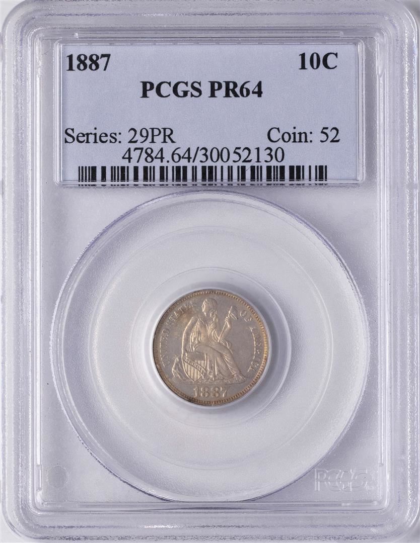 One 1887 Proof Seated Liberty Dime Coin PCGS PR64. PCGS Graded.