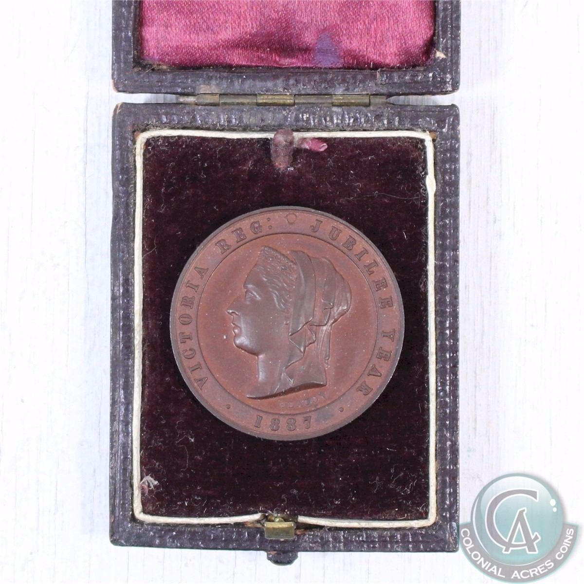 1887 Queen Victoria Jubilee Medallion Commemorating 50 Years on the Throne. This Medallion has a bust of the Queen on the obverse and features significant life dates. This Medallion is 32mm in diameter, weighs 11.4grams and comes in Mint case.