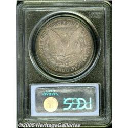 <B>1887-S<img border='0' src='http://www.heritagecoins.com/images/star.gif' width=10 height=10>$1 MS64 PCGS.</B></I> Lustrous surfaces are visited by light blue and rose-orange toning, which conceals a few miniscule marks.