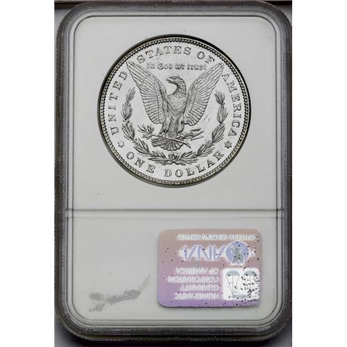 <B>1887<img border='0' src='http://www.heritagecoins.com/images/star.gif' width=10 height=10>$1> MS65 Deep Mirror Prooflike NGC.</B></I> Deeply mirrored fields offer pleasing contrast with sharply executed, mildly frosted motifs. A few minute contact marks on Liberty's face and neck are well within the parameters of the MS65 grade designation.